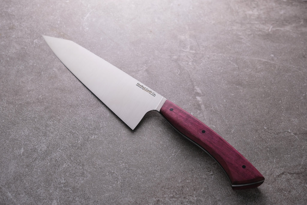 7 Inch Stainless Steel K-Tip Chefs Knife With Purple Heart Wood Handle